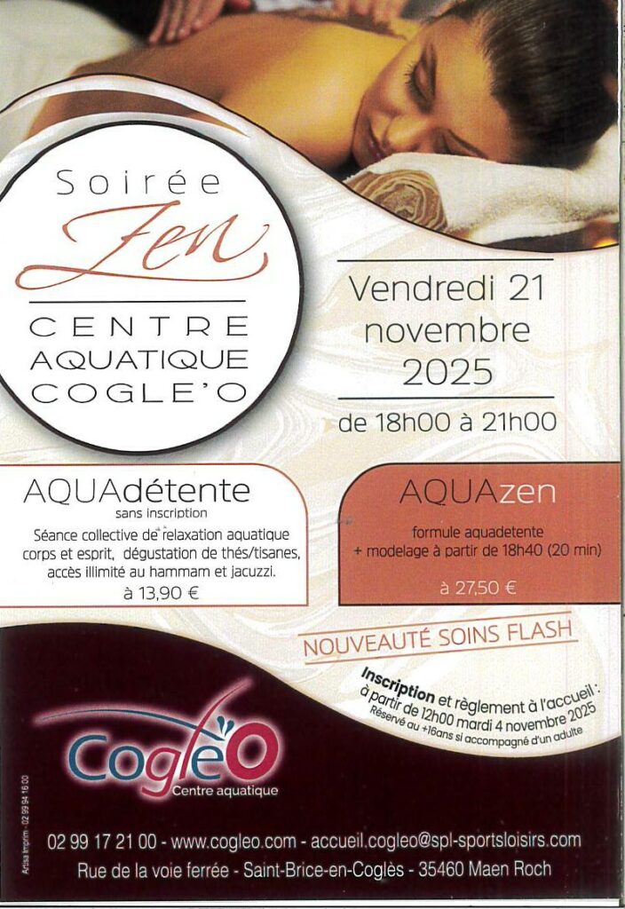 Inscription et règlement à l’accueil du Centre Aquatique Coglé’O à partir de 12h mardi 4 novembre 2025