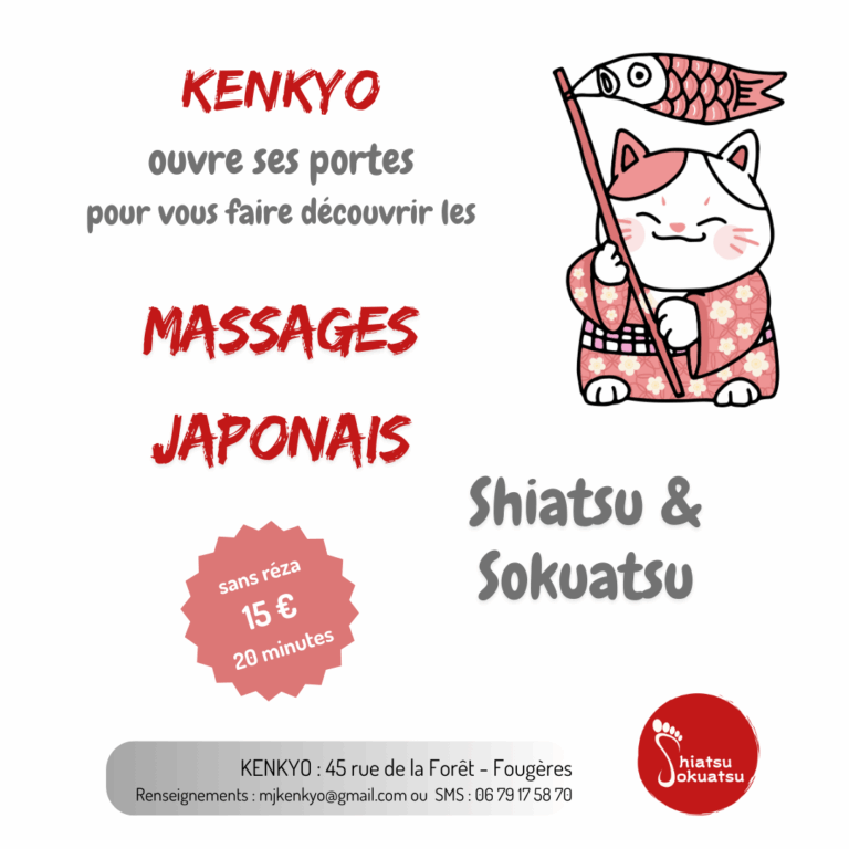 samedi 8 novembre de 10h à 13h Kenkyo ouvre ses portes / découverte du Shiatsu 15€ les 20mn de massage Réservation possible à partir du 5 novembre par SMS/whatsapp : 06 79 17 58 70